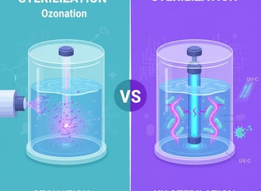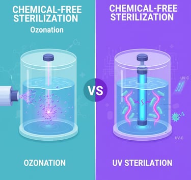 Discussing the advantages and disadvantages of ozone (a strong oxidiser) and UV (physical sterilisation) in killing microbes.